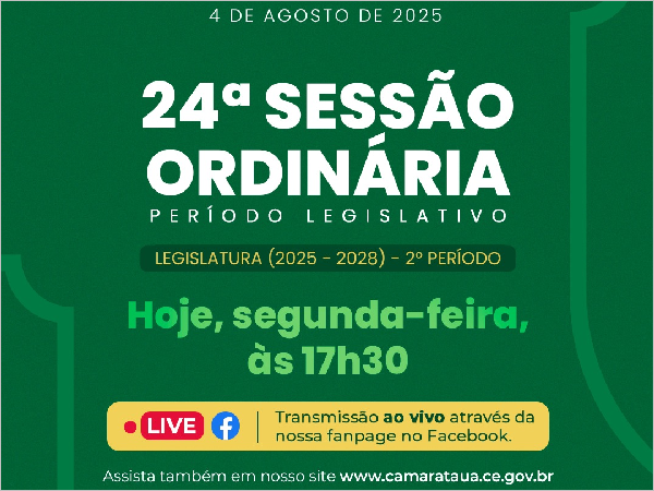 Hoje, segunda-feira (15), às 17h30, será realizada a 30ª Sessão Ordinária, do segundo período legislativo de 2025.